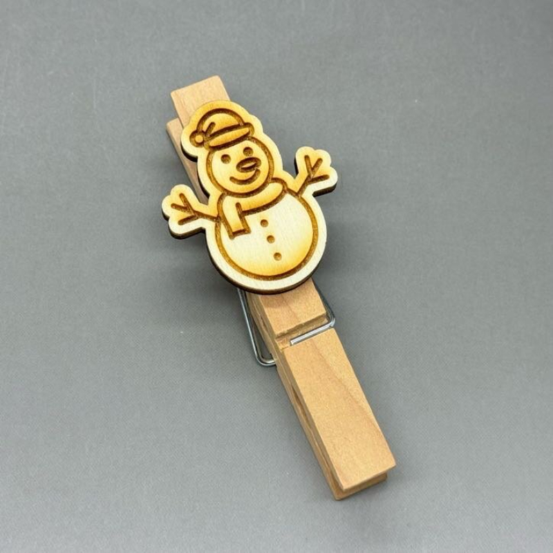 Gravírovaný dřevěný vánoční kolíček na dárky – Sněhulák