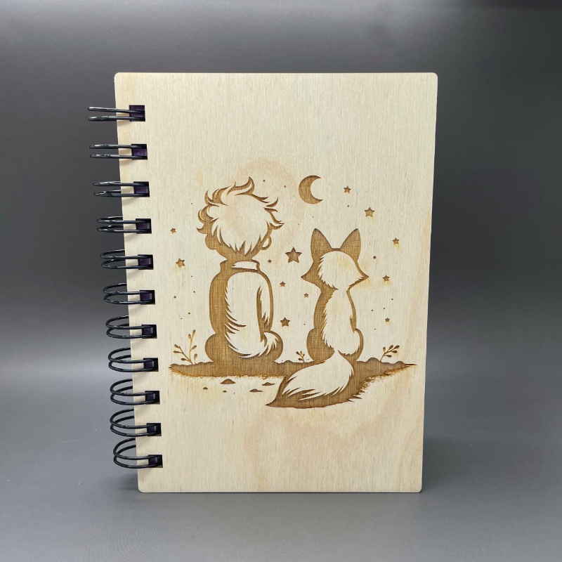 Gravírovaný dřevěný zápisník s princem a liškou č. 5 – Střední – A6